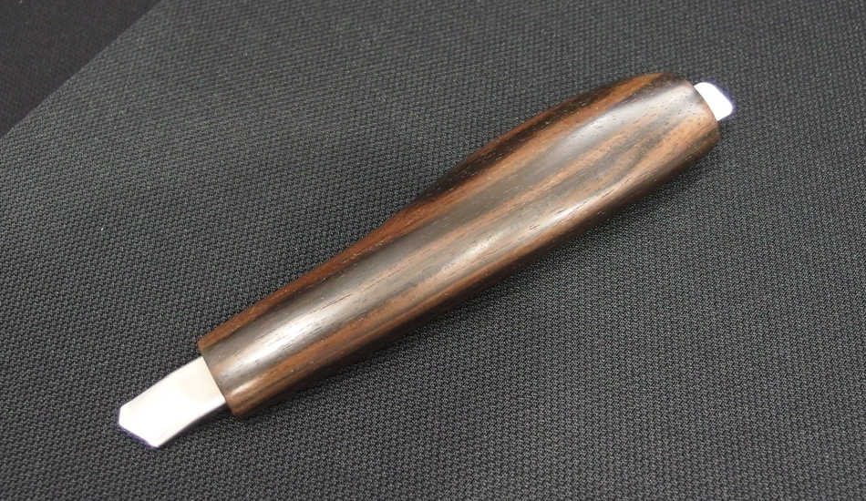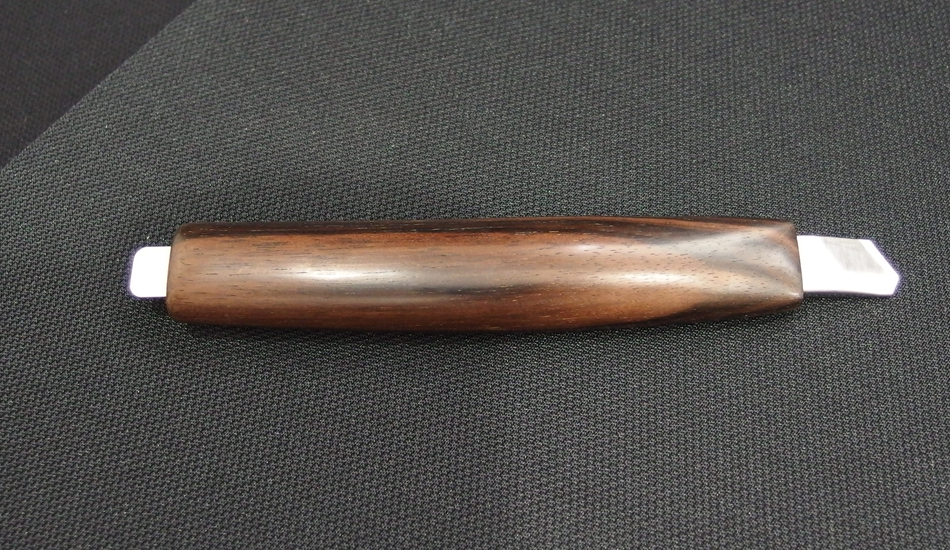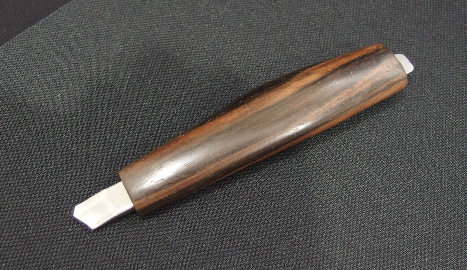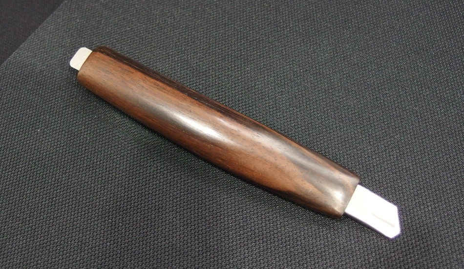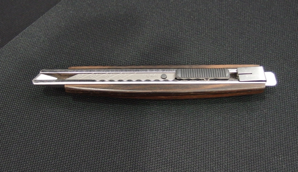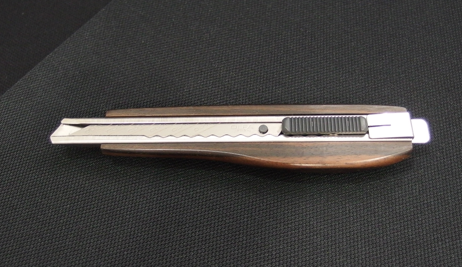 本体は日本製のOLFA(オルファ株式会社)もしくはNTカッターを使用。替え刃もスタンダードなカッターナイフのものが使用でき、交換は市販のカッターナイフと同じようにできるので安心。
